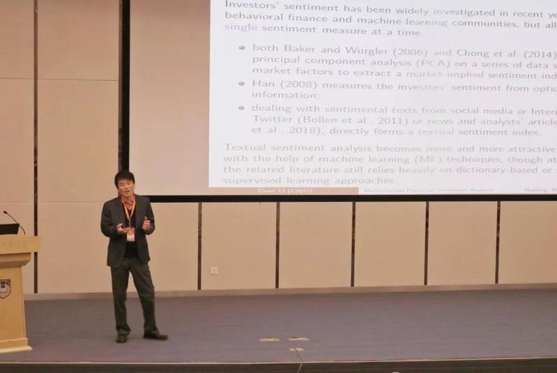 (金融风险管理专题)香港城市大学副校长李端讲座教授作关于“Financial Sentiment Analysis and Risk Management(金融风险管理在国有企业的应用)”的大会报告,基于5G时代特征的个人、机构及个人与机构的混合这三种不同市场情绪信息源,利用人工递归神经网络(RNN)算法预测市场回报,并利用腾讯、平安和中国建设银行数据进行模型测试。