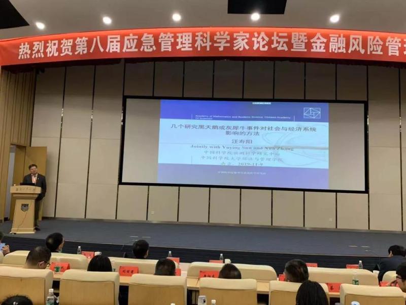 本次论坛举行了9场“金融风险管理”专题研讨和7场“应急管理”专题研讨,此外还开生面地举行了1场知识产权专题演讲。(金融风险管理专题)中国科学院经济与管理学院院长汪寿阳院士以“研究黑天鹅事件或灰犀牛事件对经济系统影响的几个方法”为题作大会报告;在5G时代背景下,针对黑天鹅事件与灰犀牛事件的典型特征及其对经济的后续影响,在现有方法无力解决的基础上,提出了基于经验模态分解的事件分析法和区间计量经济学方法,采用数据分解技术和区间过程建模法,深度剖析黑天鹅或灰犀牛事件对经济系统的影响机制。