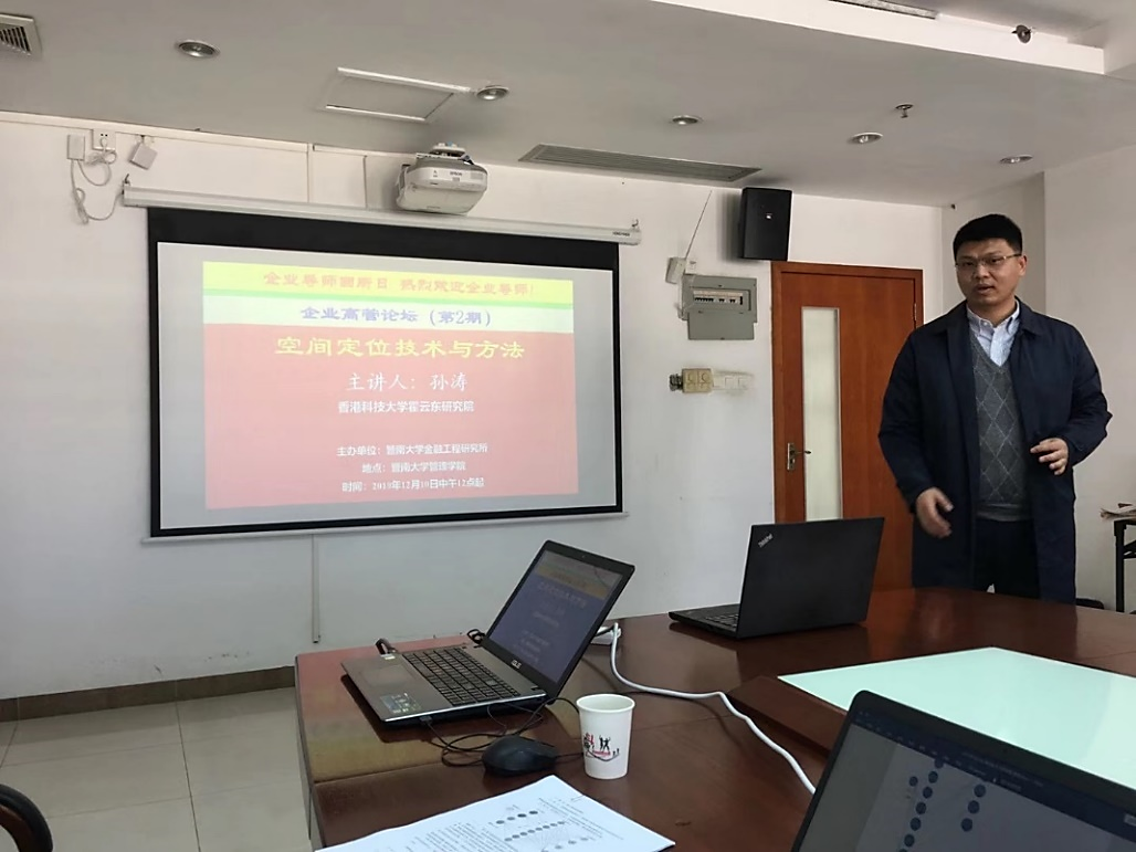 2019年12月10日,应我校应急技术研究中心主任庞素琳教授的热情邀请,香港科技大学霍英东研究院的孙涛老师给研究所全体师生做了“室内定位技术与方法”的精彩学术报告。应邀参加本次学术活动的还有广东南粤健康科技有限公司黄海勇总经理及其团队。学术报告会由庞素琳教授主持。