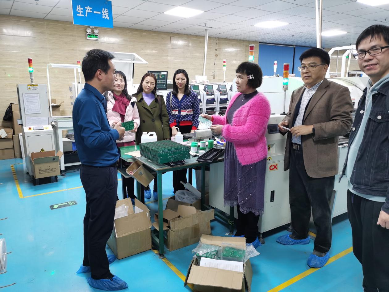 基于智能证件卡未来的市场前景,许光华总经理谈了智能证件卡与“巴拿赫一键求救”合作的想法,并带领庞素琳教授一行人到车间参观了智能证件卡的电路板、芯片等电子配件的生产过程,着重介绍了整个安全生产过程,以及在生产中用到的智能监测技术。