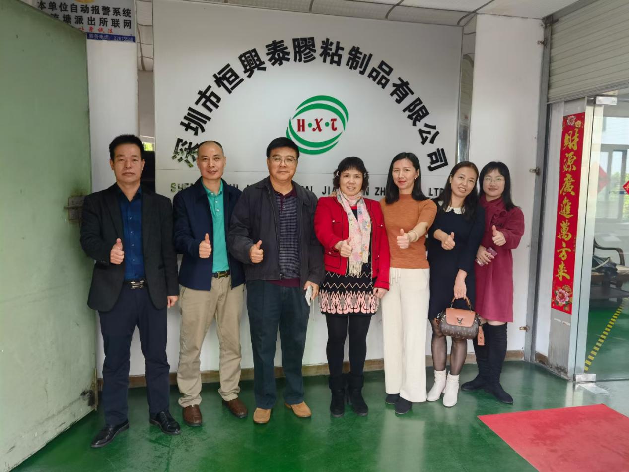 12月24日上午,应深圳市恒兴泰胶粘制品有限公司刘敬庆总经理的热情邀请,庞素琳教授师生、深圳市呈祥自动化科技有限公司许光华总经理、深圳百通力鑫实业有限公司刘文裕总经理、中国太平洋保险公司宋斐主管和深圳市睿汇云光电有限公司李春雪一同到恒兴泰胶粘制品有限公司参观调研。
